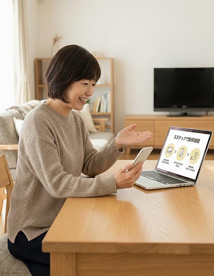 はじめての方でも安心してご利用いただけるよう、当店ではわかりやすく負担の少ない買取プロセスを採用しています。面倒な準備は一切なく、まずはLINEで写真を送っていただくだけで査定がスタートし、専門スタッフが迅速かつ丁寧に対応いたします。